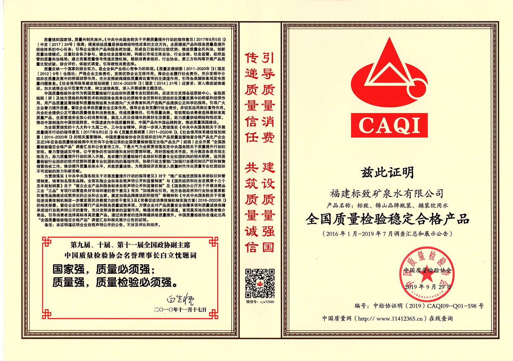 • 2020-03-252019年9月,標(biāo)致公司榮獲“全國質(zhì)量檢驗(yàn)穩(wěn)定合格產(chǎn)品”稱號(hào)