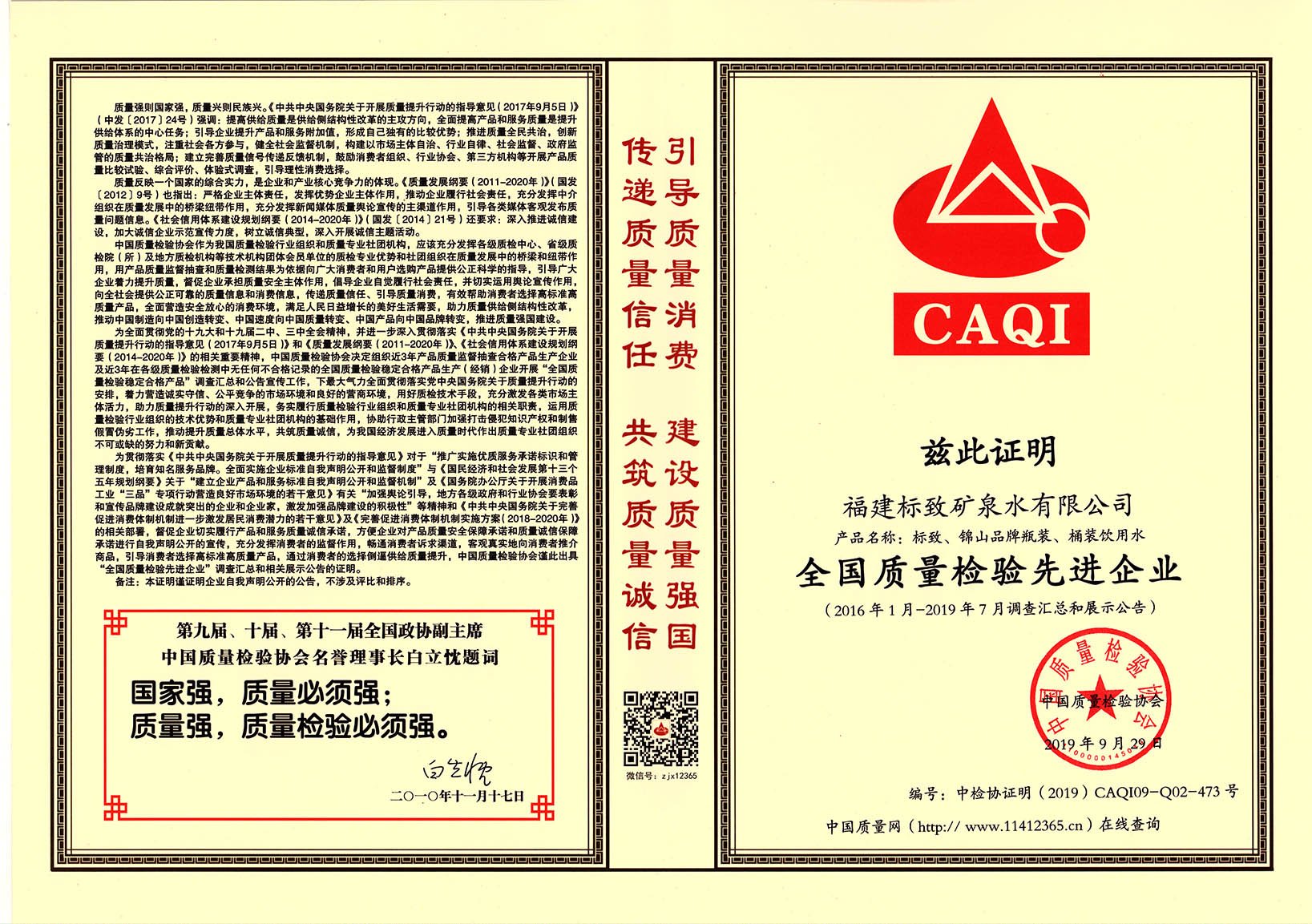 • 2020-03-252019年9月,標(biāo)致公司榮獲“全國質(zhì)量檢驗(yàn)先進(jìn)企業(yè)”稱號(hào)
